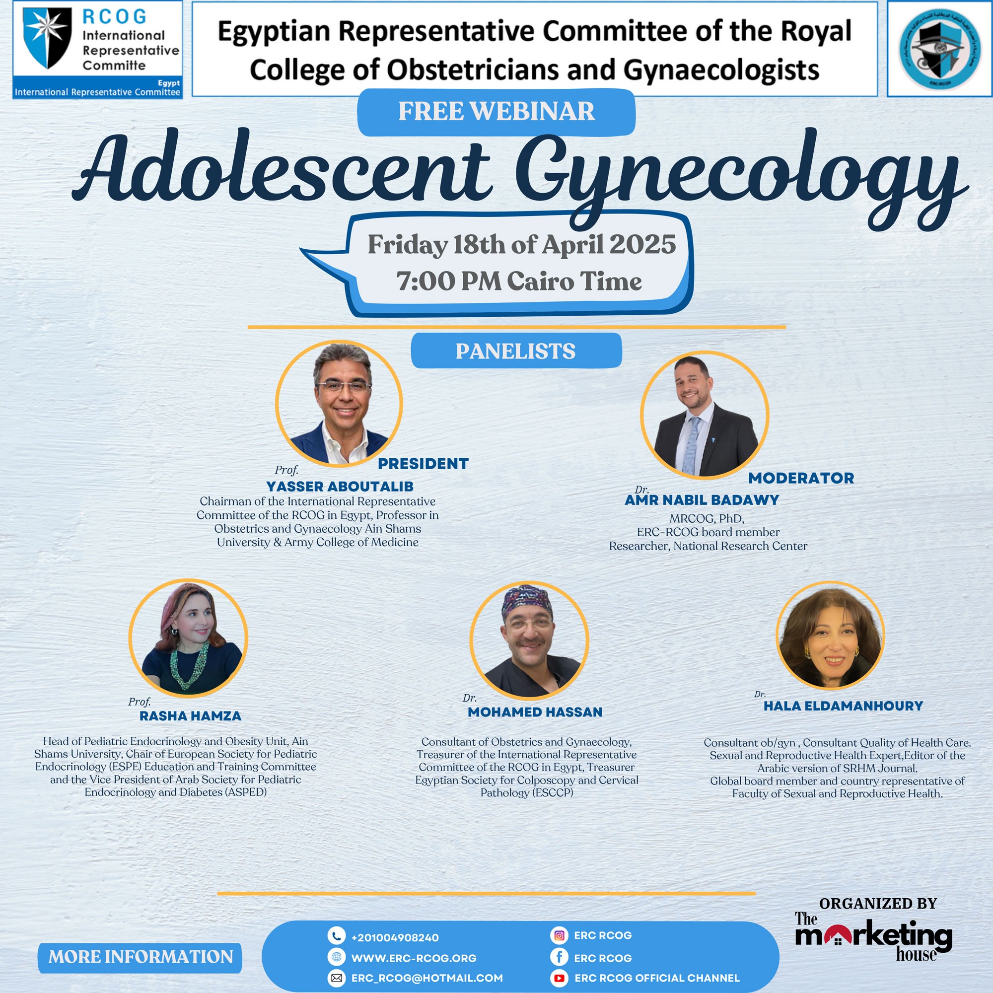 Join us this Friday for an insightful webinar hosted by the Egyptian Representative Committee of RCOG (ERC), focusing on some of the most sensitive and essential issues in adolescent gynecology—where clinical care, ethics, and communication come together.